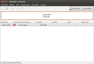 Así, si queremos ‘ampliar’ la memoria de intercambio de nuestra máquina, primero deberemos formatear la unidad flash como swap, si es que queremos utilizarla permanentemente para solo ese uso. Este proceso podemos realizarlo con comandos o con algún programa editor de particiones, como por ejemplo GParted (Gnome Partition Editor).