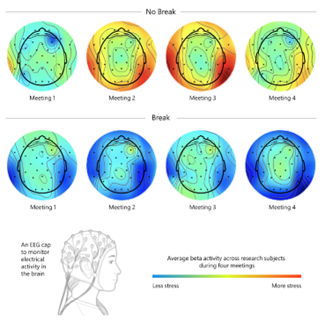 Durante el estudio se realizó una comparación entre el cerebro de personas tras una reunión con pausas y sin ellas. “Cuando los participantes tuvieron descansos para meditar, los patrones de ondas cerebrales mostraron una mayor participación durante la reunión”, comenta Ramo. Y agrega: “sin interrupciones, los niveles fueron negativos, lo que sugiere que los participantes estaban retraídos o menos comprometidos con la reunión”.