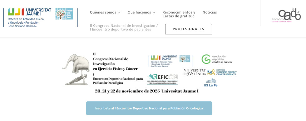 La Universitat Jaume I acogerá los días 20 y 21 de noviembre de 2025 el II Congreso Nacional de Investigación en Ejercicio Físico y Cáncer. Organizado por la Cátedra de Actividad Física y Oncología «Fundación José Soriano Ramos», contará con un programa científico y divulgativo diseñado para compartir conocimiento y fomentar el intercambio de experiencias entre los diferentes agentes implicados en la integración del ejercicio físico en el abordaje del cáncer.