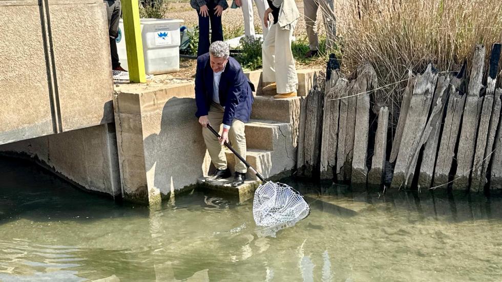 El vicepresidente tercero y conseller de Medio Ambiente, Infraestructuras, Territorio y de la Recuperación, Vicente Martínez Mus, ha asistido al acto celebrado en el entorno del parque natural de l’Albufera, en la acequia de Setze Pams (Sueca-Albalat). Medio centenar de escolares del IES Joan Fuster de Sueca, junto a técnicos y representantes de las entidades implicadas, han participado en un taller educativo y en una suelta simbólica de ejemplares albergados en barbos, en el marco de las acciones de recuperación de esta especie amenazada.