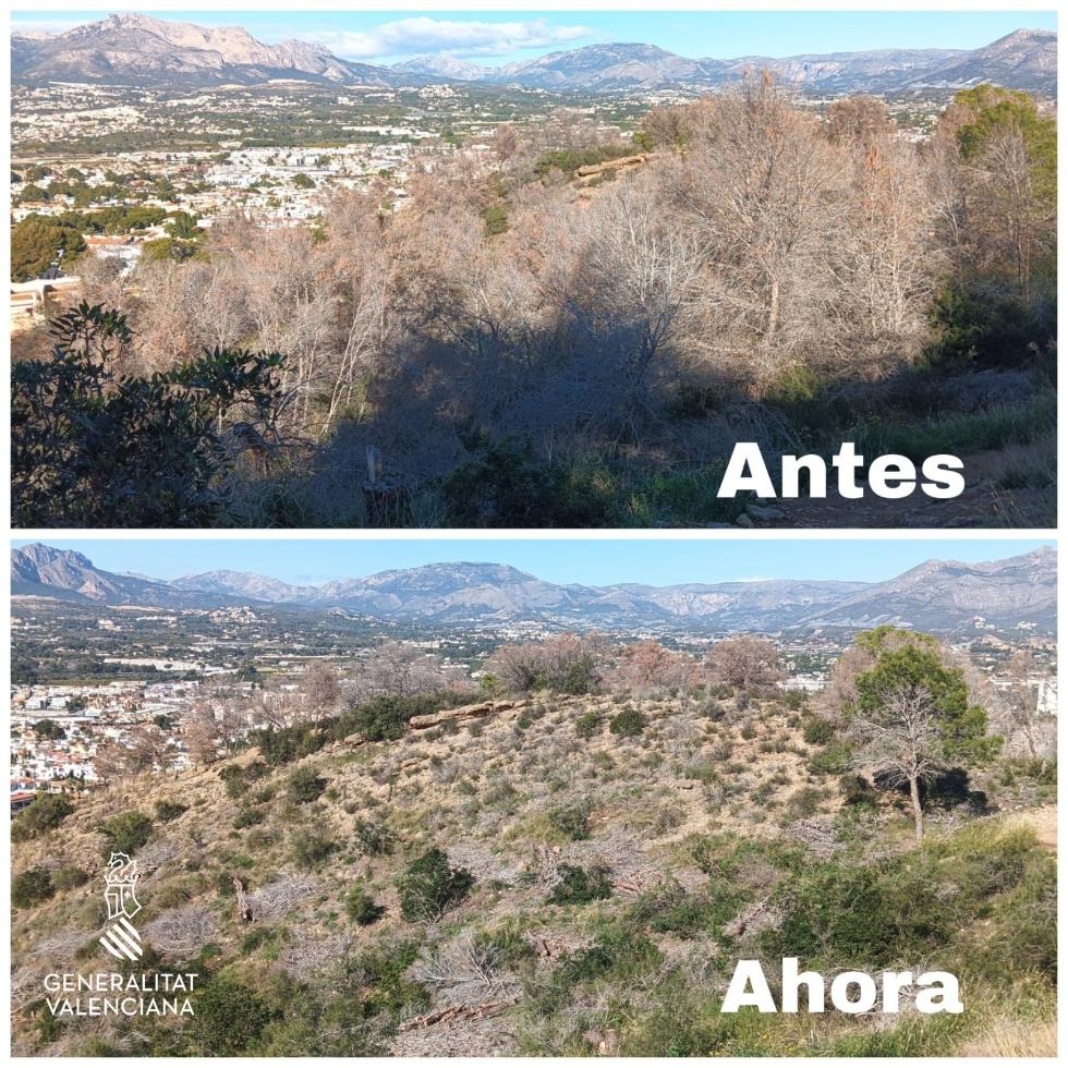 A estas labores se suman las 11 hectáreas en las que ya se intervino mediante el proyecto de emergencia ejecutado entre finales de 2024 y principios de 2025, únicamente en el término municipal de l’Alfàs del Pi, lo que pone de manifiesto la dimensión del esfuerzo que se está realizando en este municipio dentro del plan de choque forestal.